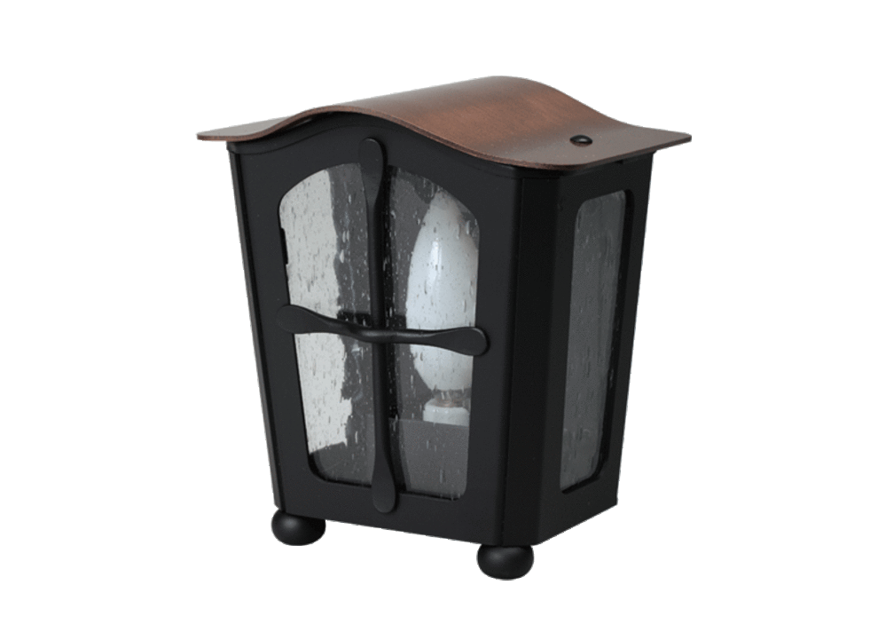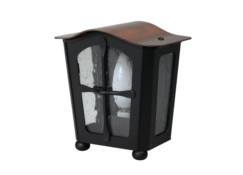 銅の屋根と泡入りガラスが特徴のレトロランプの壁付けタイプ。