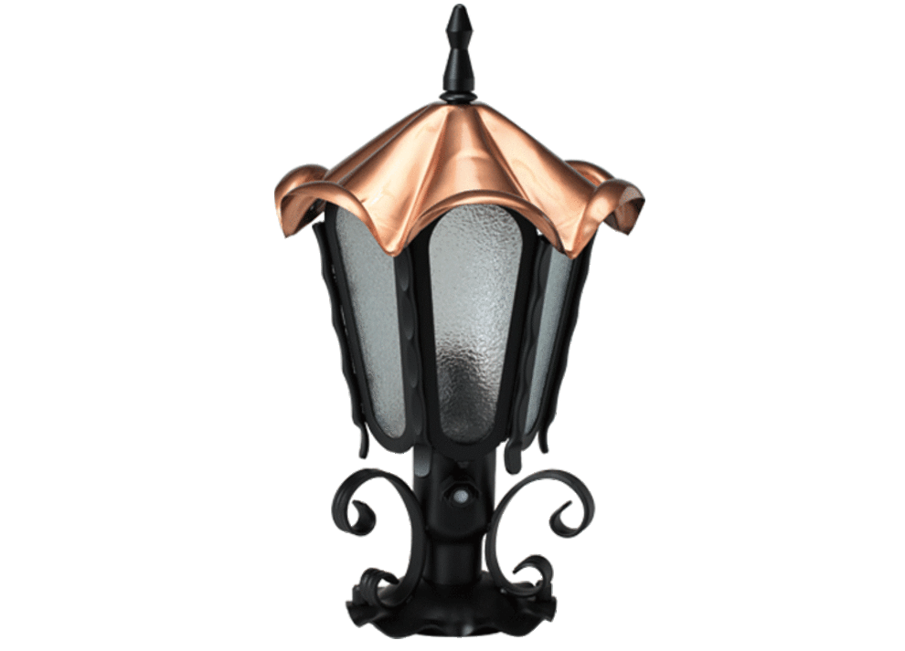 六角形の銅の屋根が特徴のロージーランプ。